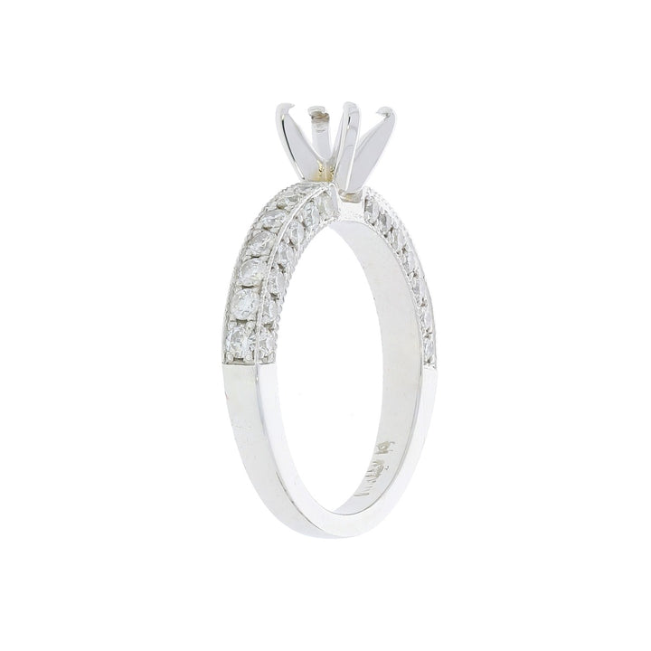 Eyes will be fixated on this immaculate platinum diamond engagement ring, showcasing pavé-set diamonds that complement your choice of the center diamond.