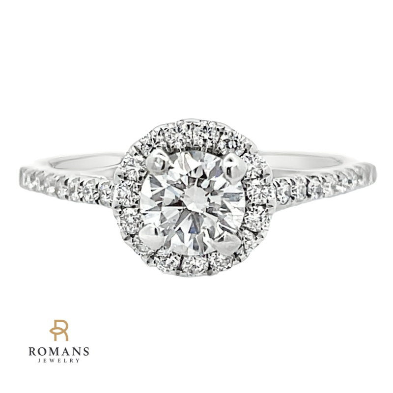 Diamond Halo Round Diamond Engagement Ring 14K White Gold .56CT