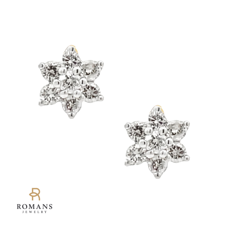 These charming 14K yellow gold flower stud earrings feature a cluster of natural diamonds totaling 0.28 carats. The diamonds, with SI1-SI2 clarity and KLM color, are set in a beautiful floral design, offering a touch of elegance and sparkle. Measuring 6.7mm in length and 6.1mm in width, these earrings are the perfect balance of sophistication and timeless style, ideal for both everyday wear and special occasions.