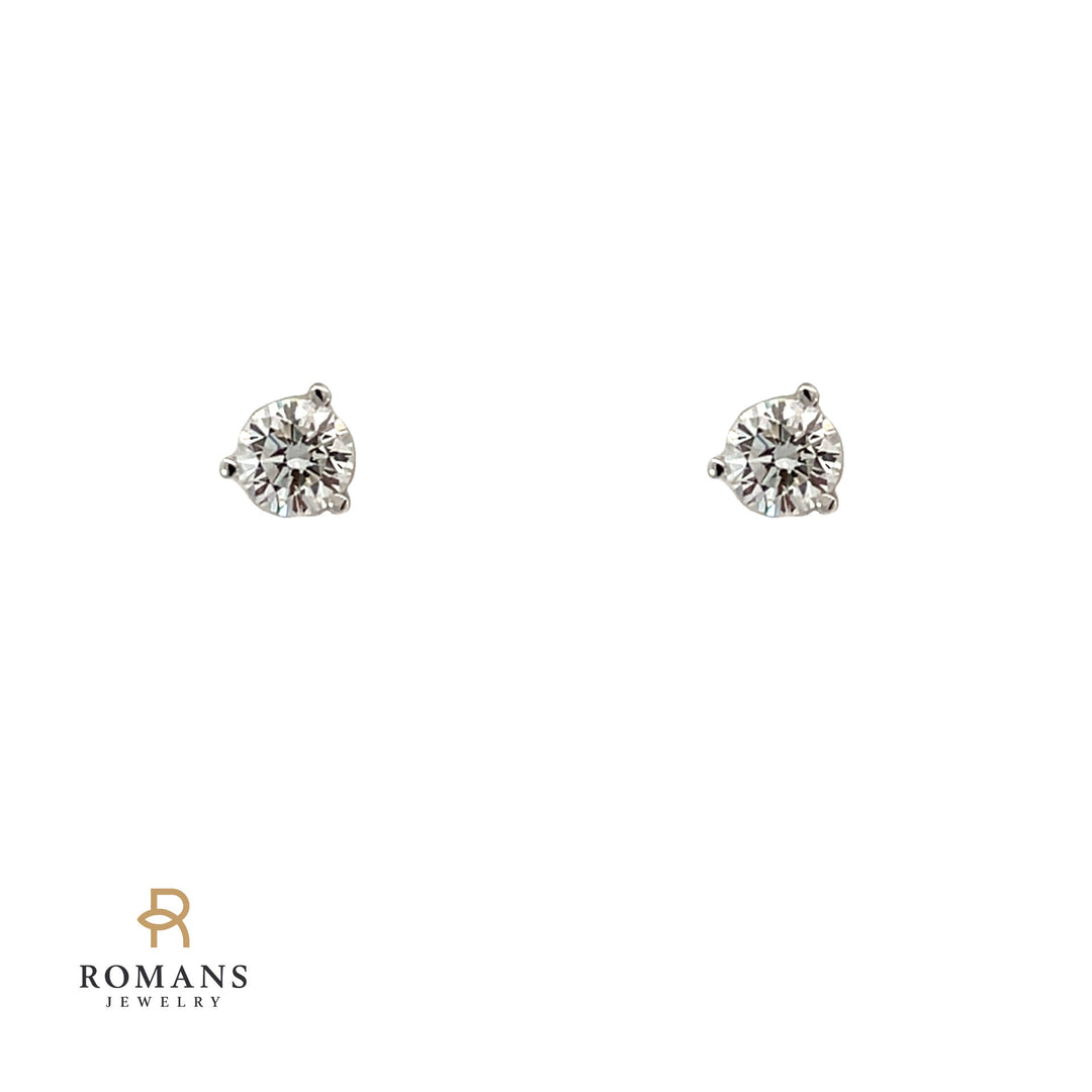 Classic and beautifully matched, these diamond stud earrings feature round brilliant cut diamonds set in 14k white gold four-prong martini settings with comfortable push back posts.