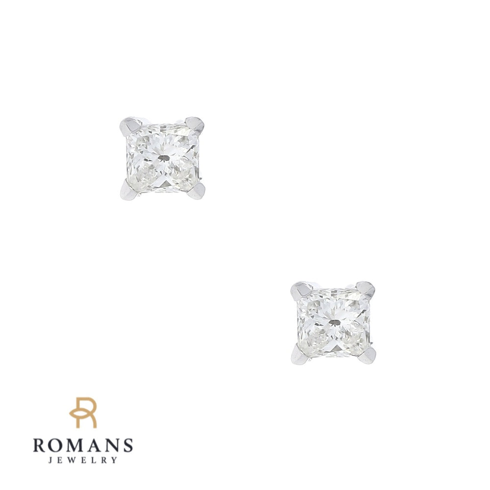 Princess Cut Diamond Stud Earrings 14K White Gold .56CTW