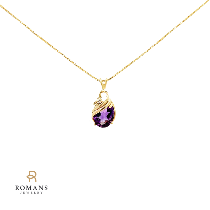 Amethyst Diamond Pendant 14K Yellow Gold 2.50CT