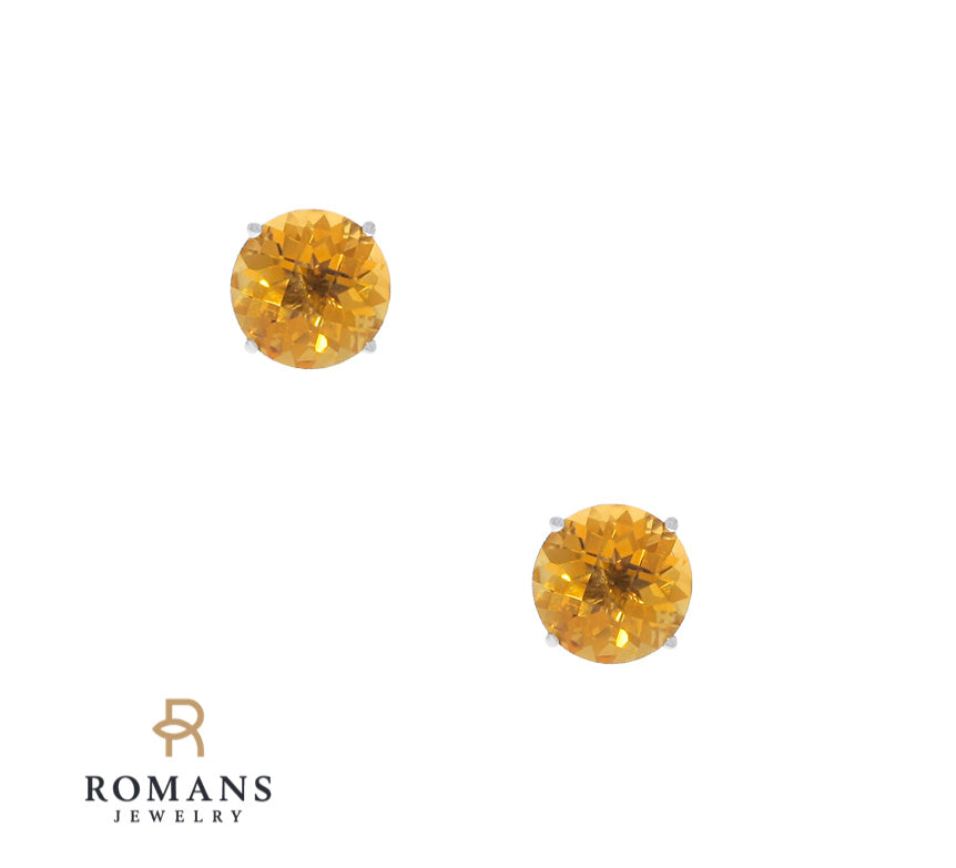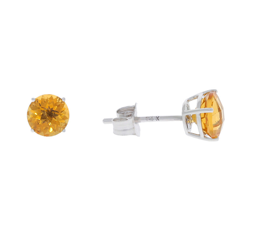 Classic and beautifully matched, these vibrant citrine stud earrings feature round checkerboard gemstones set in 14K white gold four-prong settings with comfortable push-back posts. Their petite size makes them a great everyday jewelry option.