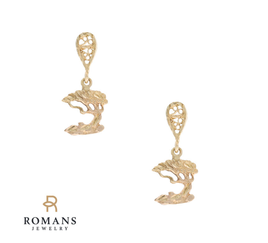 This unique dangle stud cypress tree earrings are made from 14k yellow gold and is a shady addition to your jewelry collection.