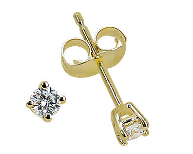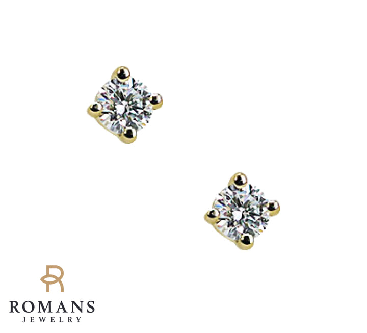 Classic and beautifully matched, these diamond stud earrings feature round diamonds set in 14k yellow gold 4-prong settings with comfortable push back posts.