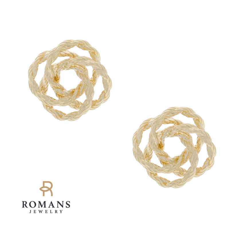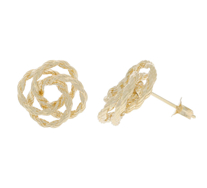 Wear these love knot earrings with any look. Sculpted from 14k yellow gold these petite love knots with a push backing closure are finished with a rope design.