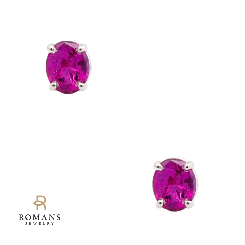 Classic and beautifully matched, these vibrant dark berry stud earrings feature oval sapphire gemstones set in 14K white gold four-prong settings with comfortable push-back posts. Their petite size makes them a great everyday jewelry option.