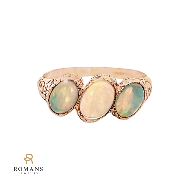 Vintage Opal Three Stone Engraved Ring 14K Rose Gold 1.10CTW