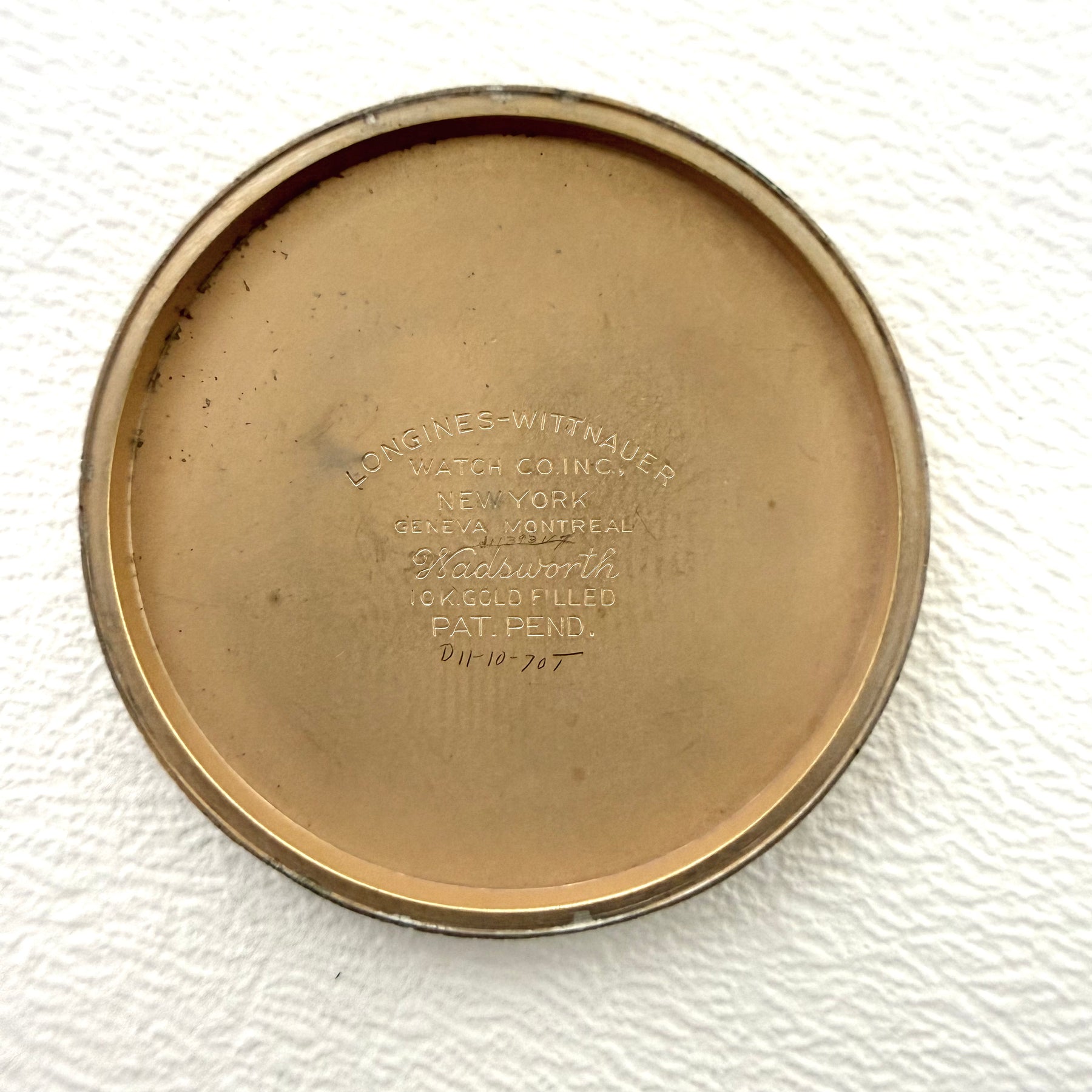 • Inside Caseback: Longines Wittnauer Watch Co., Inc. New-York Geneva Montreal · 10K Gold Filled · Pat. Pend.