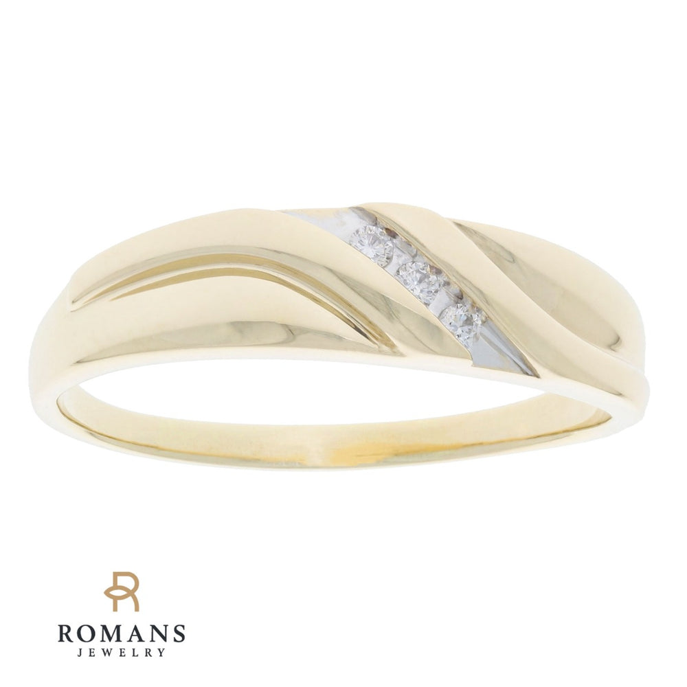 A smooth channel of three brilliant diamonds makes a bold statement in this wedding band with softened edges a low profile and tapered shank for increased comfort.